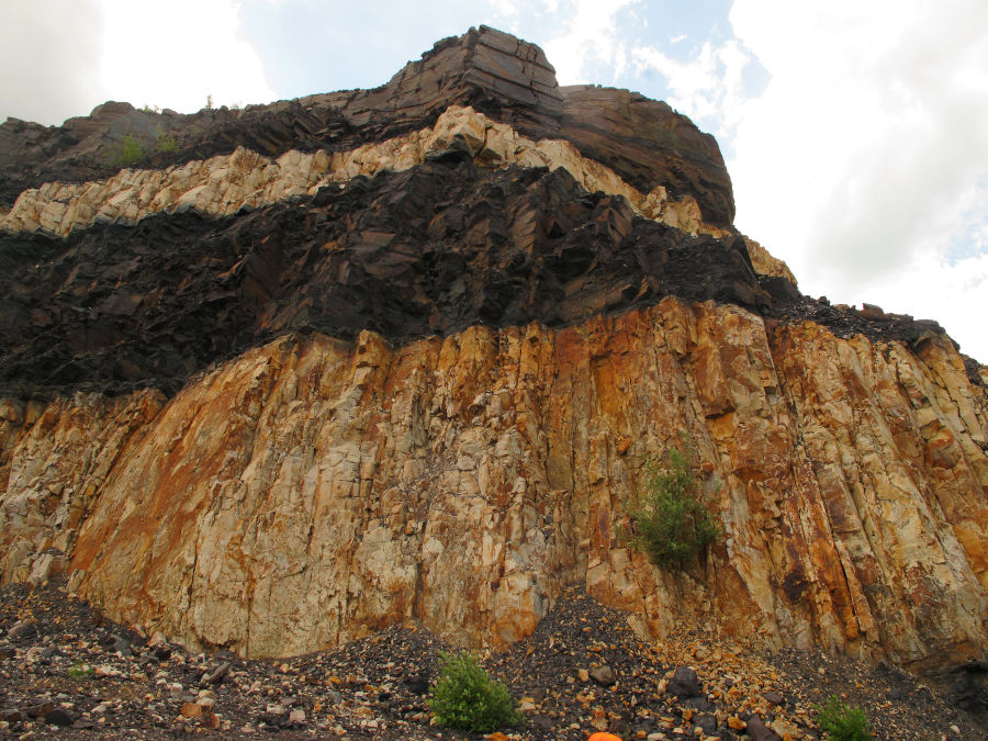 Entre todas estas rocas sedimentarias aparecen intercaladas otras mucho más claras que muestran un marcado paralelismo con ellas, pero también notables diferencias en lo relativo a su aspecto, a su composición y, por supuesto, a su origen. Se trata de rocas ígneas que, por tanto, se formaron a partir de la solidificación de magma a lo largo de algún episodio volcánico que afectó a las rocas de este rincón de la cordillera en el pasado, muy probablemente de forma simultánea a la formación de las rocas sedimentarias entre las que se sitúan. El magma ascendió desde zonas más profundas a través de uno o varios conductos, pero no existen evidencias de que alcanzase la superficie exterior, sino que circuló entre las capas de sedimentos que se estaban depositando en la cuenca y se adaptó a la disposición de los estratos intercalándose entre ellos. Una vez que el magma se enfrió y solidificó dio origen a cuerpos de rocas ígneas de morfología tabular que, por mostrar paralelismo con las rocas sedimentarias, se clasifican como «sills».